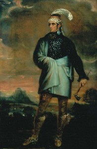 After it was over D and I were waiting in the hotdog lineup, when I saw one of Major John Norton’s “Mohawk Warriors” wandering toward us. You knew Major Norton—Teyoninhokovrawen—by the curling white feather he wore in his turban, which stood out clear across the field. His “Mohawk Warriors” were stars of the afternoon, getting a lot of the cheers with their successful attack on the American position. Without uniforms, they were easier to distinguish one from the other, and I watched one man in an HBC robe, another whose face was half red, another in a tall black hat.